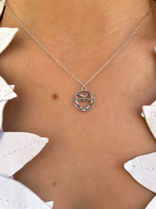Collar Mamá Corazón Multicolor Plata